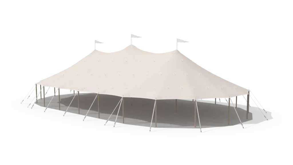 Een Sailcloth tent brengt direct een luxe en sfeervolle uitstraling naar jouw evenement. Het lichtdoorlatende zeildoek zorgt overdag voor een natuurlijke, zachte lichtinval en creëert 's avonds een warme ambiance. Perfect voor bruiloften, feesten en exclusieve bijeenkomsten in de buitenlucht.
